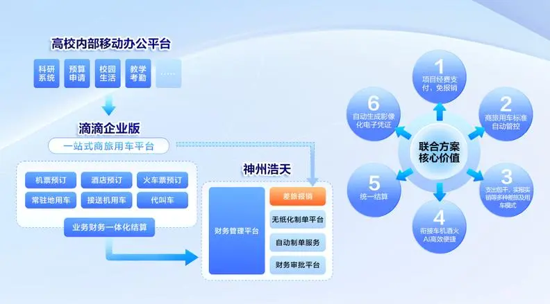 9 月10日,滴滴企业版与神州浩天宣布升级高校商旅报销解决方案。